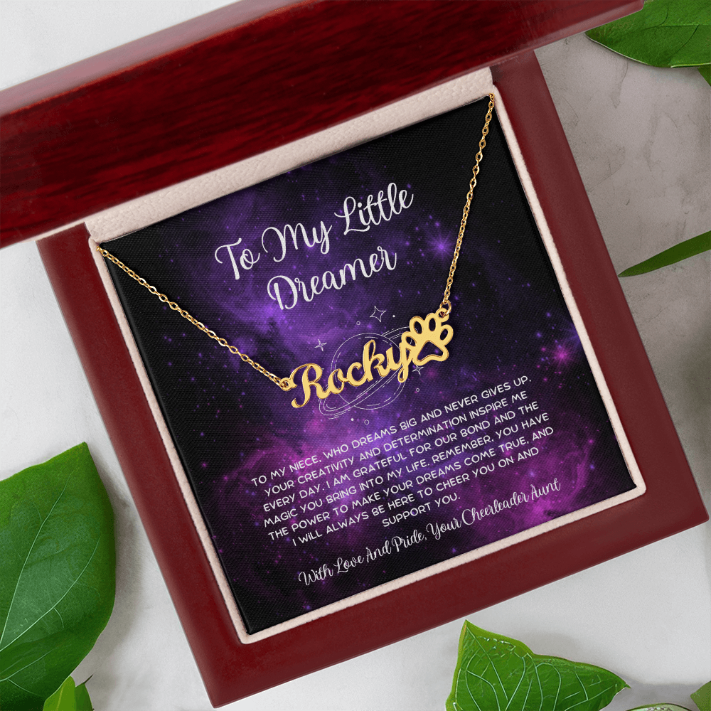 To My Little Dreamer - From Aunt to Niece Paw Print Name Necklace