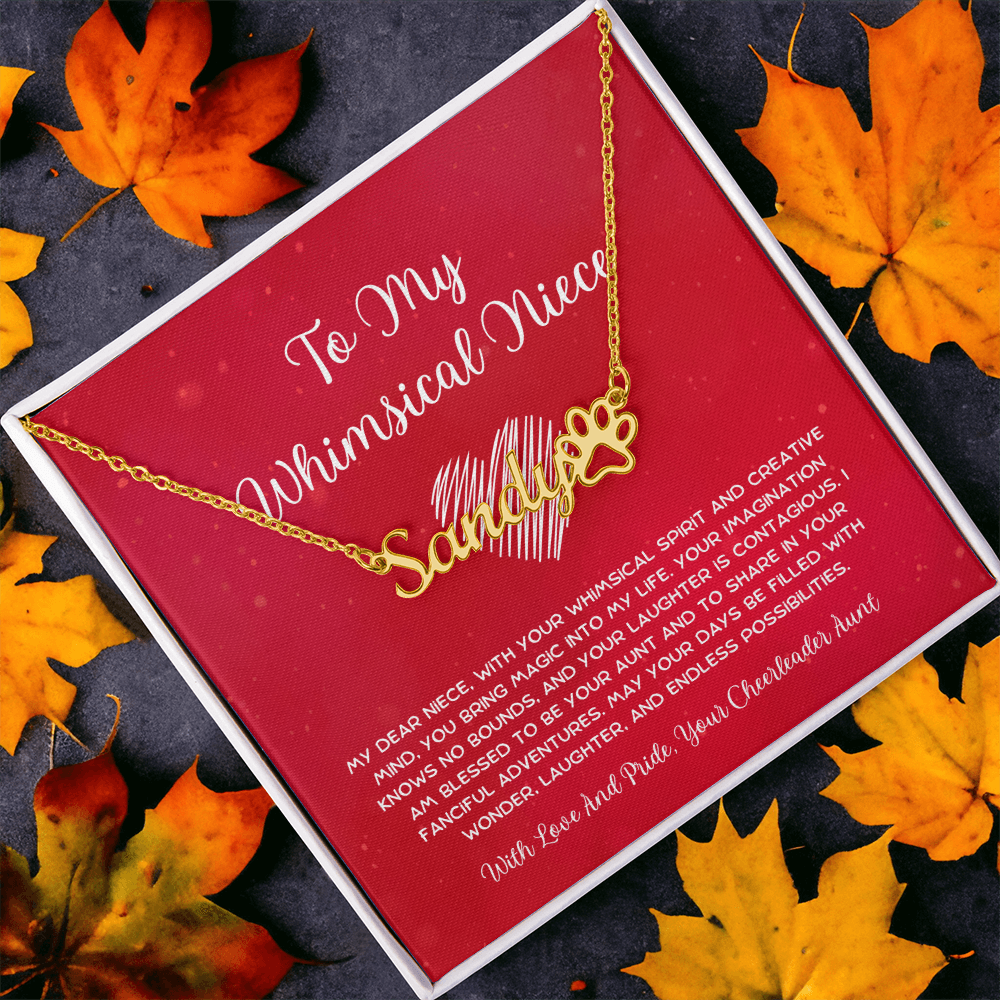 To My Whimsical Niece - From Aunt to Niece Paw Print Name Necklace